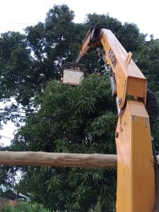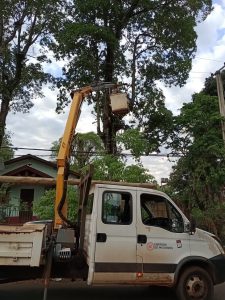 Este fin de semana avanzó el trabajo de despeje de líneas, mantenimiento y poda preventiva en el barrio Villa 14, donde se encuentran emprendimientos comerciales, hospedajes, hoteles y restaurantes. El entorno natural de la ciudad exige que este trabajo se realice en forma paulatina para minimizar las afectaciones por el roce de ramas o cortes del cableado durante las tormentas, tarea en la que se procura el menor impacto con el mejor resultado posible.
