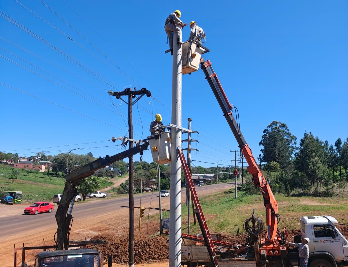 En paralelo, en San Vicente se efectuó el recambio de dos postes de madera por columnas de hormigón de retención en la línea de 13,2 kV, con un cruce sobre la Ruta Nacional 14, fortaleciendo así la infraestructura de distribución en la zona.