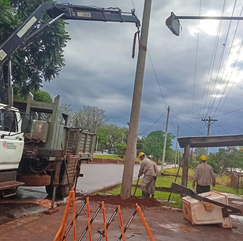 En paralelo, en la localidad de Wanda —en la colectora de la Ruta 19, sobre la avenida José Jelen— se reemplazaron dos postes de madera por columnas de hormigón, también con nuevas crucetas metálicas e instalación de aisladores en la línea de 13,2 kV.